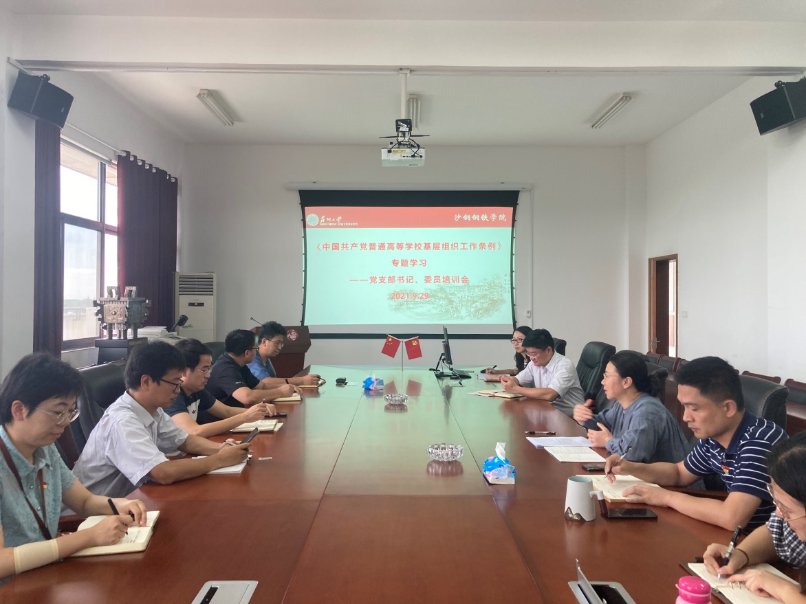 为深入学习贯彻习近平总书记“七一”重要讲话精神,提升基层党组织组织生活质量,提升党组织凝聚力战斗力,积极践行“两在两同”建新功行动,学院党委组织开展党务工作培训会。各党支部书记和委员、专职组织员参加培训会,会议由院党委书记宋清华主持。