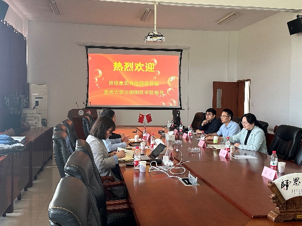 2023年4月28日上午,上海陕煤高新技术研究院副总经理王亚明、发展计划部部长谢宜桉、黄菲菲博士一行来访P站 。沙钢学院党委书记沈云彩、能源学院副院长彭扬、沙钢学院李传军、张庆宇、俞晟以及部分研究生代表参加了项目交流会。陕煤研究总院王富平、昝河松、张晶、郑每戈、崔原、顾颜等相关领导同步参加了线上交流。会议由沙钢学院李传军教授主持。