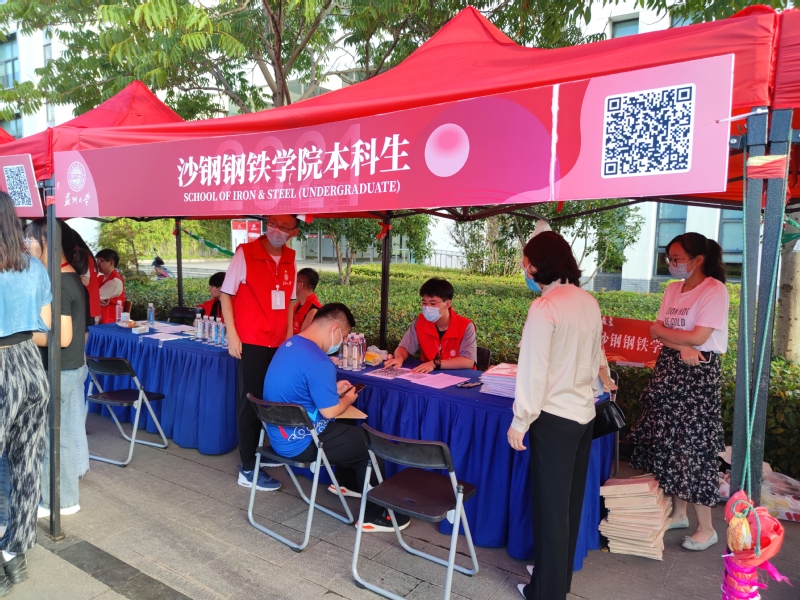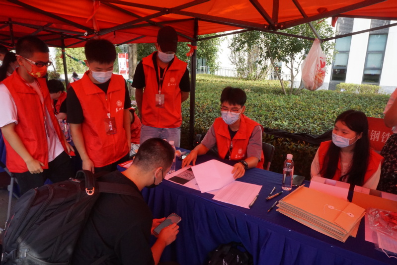 清晨六点半,沙钢的志愿者们已在此等候多时,热情地迎接到来的小21们。身为学长学姐的他们耐心地为新生和家长们答疑解惑,并帮忙搬运行李。