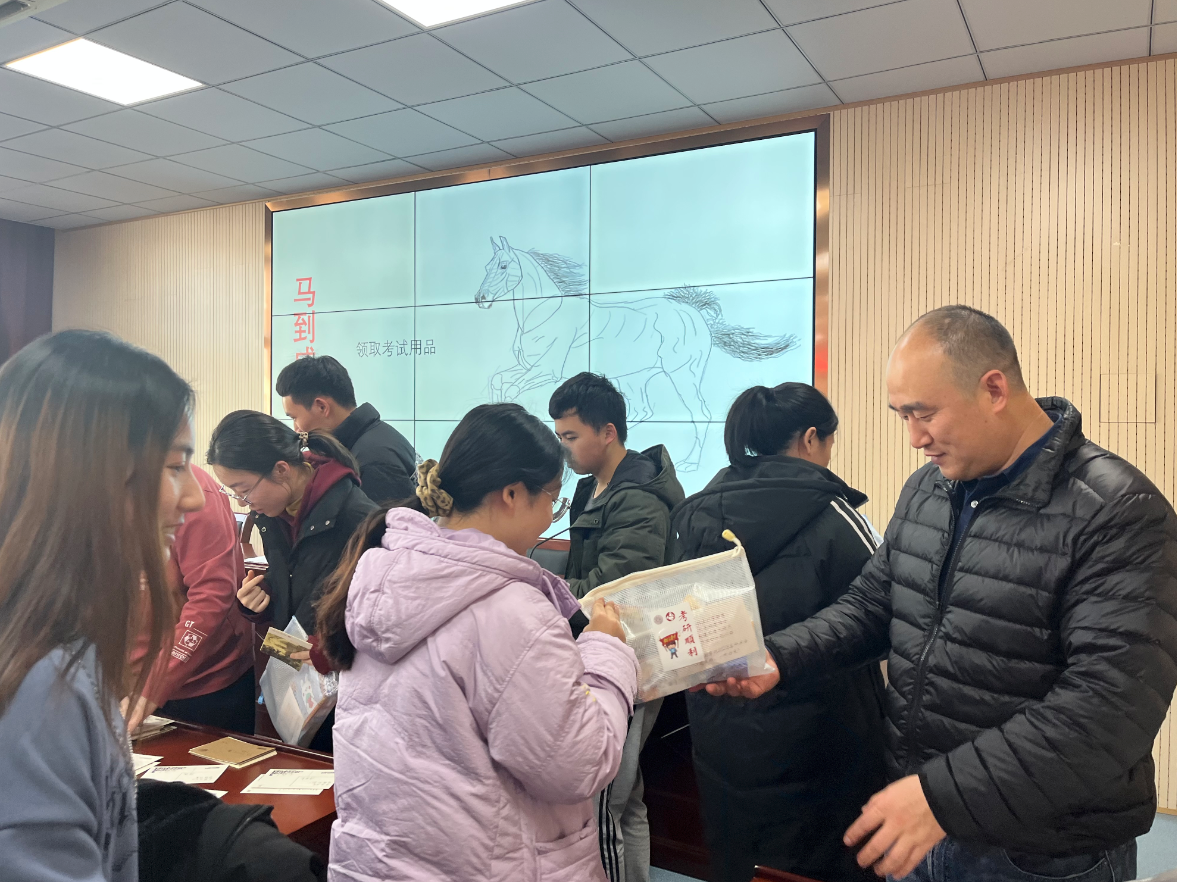 仪式的最后由老师们给考研的学子发放考研大礼包,希望考研学子顺利上岸。礼包中有桂花糕,寓意步步“糕”升;笔,寓意妙笔生花;光明牛奶,寓意前途光明;眼罩,寓意炯炯有神。除了这些还有士力架,暖宝宝,希望大家精力充沛,带着温暖去考试。在疫情当下还备好了口罩等防疫物资。一个个小小的文具袋里装着的不仅仅是各类能派上大用途的考试用具,还满载着学院全体老师对同学们考研的殷切祝福,“研”路而行,考研学子并不孤单!