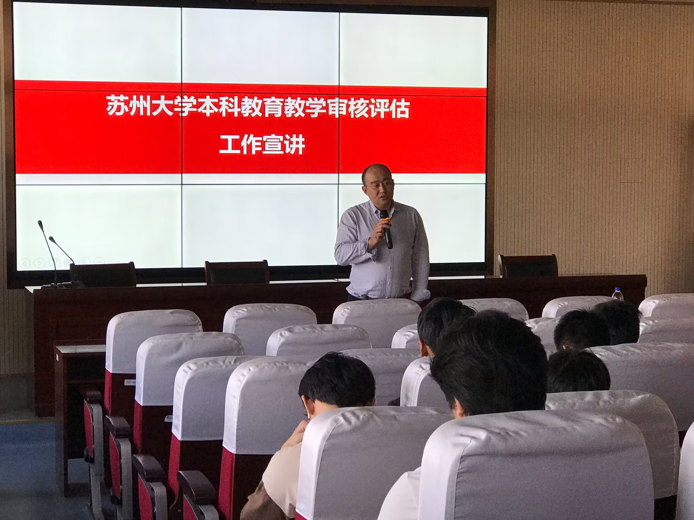 学院多渠道宣传学习,不断提高教师和学生对本科教育教学审核评估方案、审核要素、评估内涵等方面的认识。11月1日,学院组织全院学生干部及党员集中学习了《P站 本科教育教学审核评估自评报告》。党委副书记徐海洋结合审核评估的内容和工作流程对迎评工作提出要求,并对相关工作做出部署。教务办主任蔡晓旭从三个方面介绍了本科教育教学审核评估的由来发展及内涵,让学生从更高的维度,理解和支持审核评估工作,进一步增强学生的责任感和自觉性。根据安排,学院还将召开全院班团骨干大会,面向全体本科生班级组织开展“本科教育教学审核评估”主题班会。