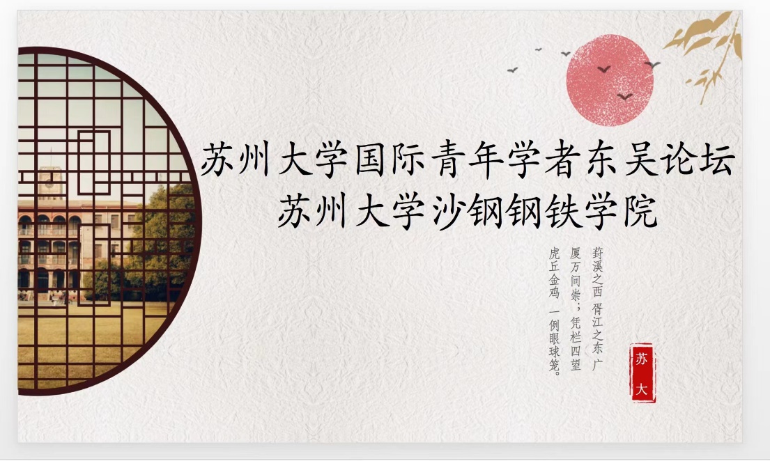 为积极推进人才强校战略,吸引一批有发展潜力的青年才俊加盟,2022年7月12日下午,P站 采用视频在线的方式,成功举办了2022年P站 东吴论坛分论坛学术交流会,来自美国、德国、奥地利、日本等国家的8位优秀学者,沙钢学院学术委员会主要成员及各系主要负责人参会。交流会由沙钢学院王德永副院长主持。
