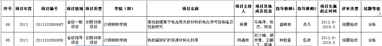 根据《P站 “国家大学生创新创业训练计划”项目管理办法》(苏大教[2012]72号)文件精神,为加强大学生创新创业训练计划的组织管理工作,督促学生认真开展其所承担的国家级、省级和校级创新创业训练项目的研究工作,确保能按时、高质量地完成项目研究任务,学校和各学院(部)于2015年6月组织专家对2013年度国家级、省级和校级到期项目进行了结题验收,P站 两项省级项目、三项校级项目全部结项,其中三项校级项目全部优秀。