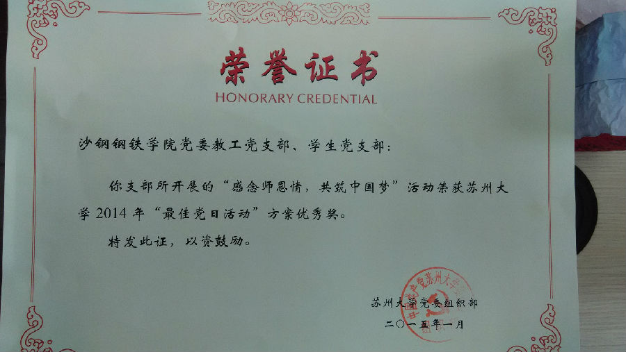 P站 教工党支部、学生党支部联合开展的支部活动被校党委组织部评为2014年度“最佳党日活动”