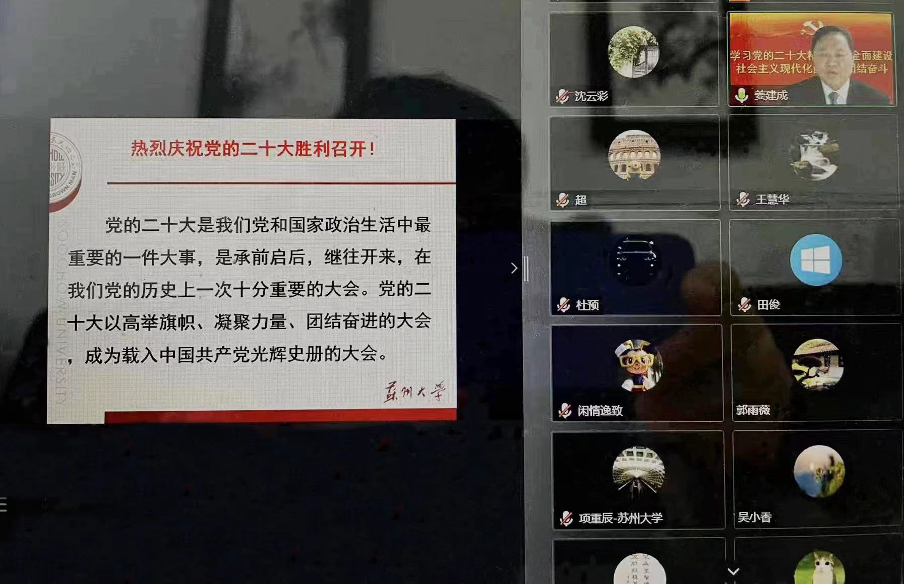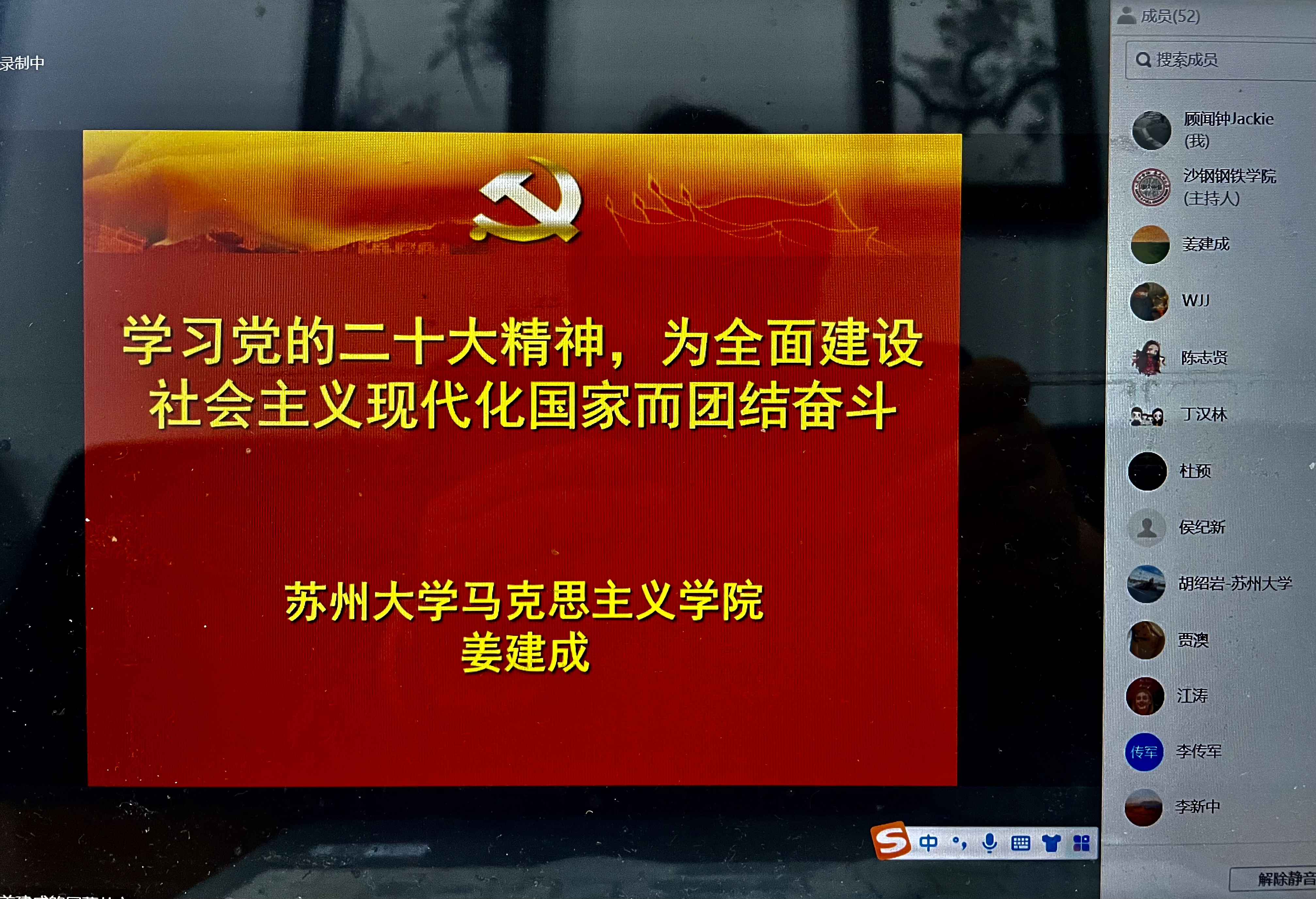 为持续深入学习贯彻落实党的二十大精神,11月30日下午,P站 党委邀请学习贯彻党的二十大精神校党委宣讲团成员,校马克思主义学院教授姜建成作了题为《学习党的二十大精神,为全面建设社会主义现代化国家而团结奋斗》的宣讲报告。校党委宣讲团宣讲报告会由学院党委书记沈云彩主持,全院师生线上参会。
